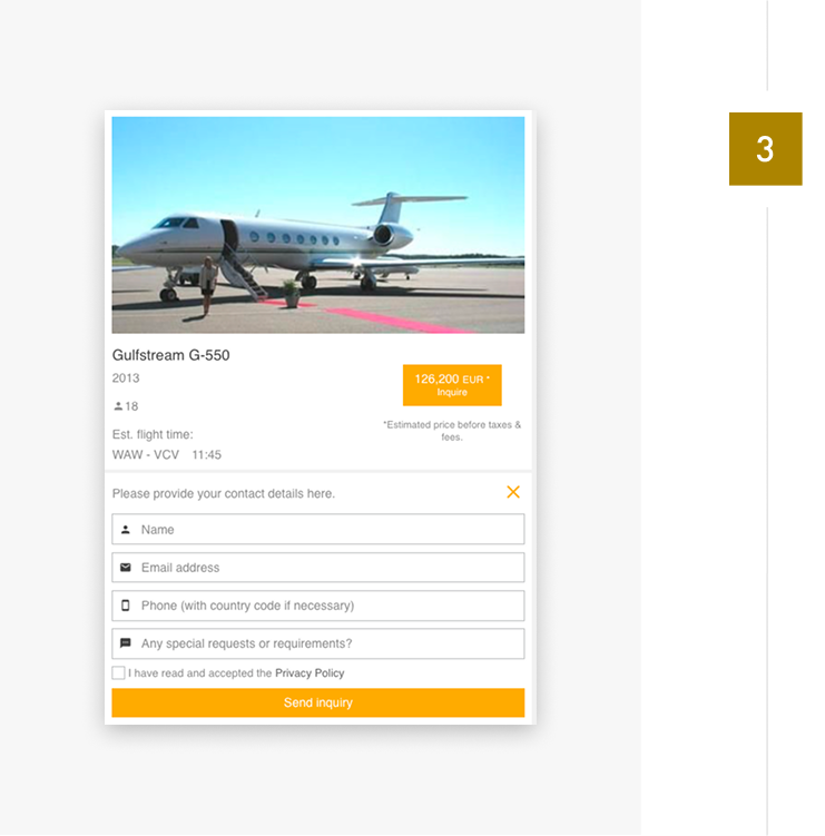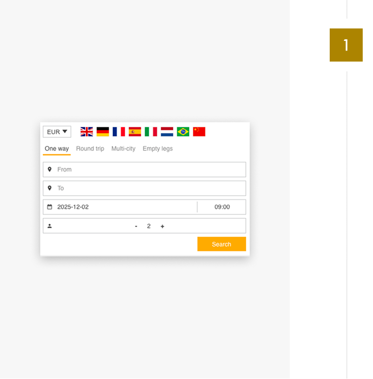 Z RentalJets rezerwacja prywatnego lotu staje się szybka, wygodna i całkowicie dopasowana do Twoich potrzeb. Korzystamy z nowoczesnej platformy, która pozwala Ci łatwo zaplanować podróż – bez zbędnych formalności i w pełnym komforcie. Poniżej znajdziesz prostą instrukcję, jak krok po kroku zarezerwować swój lot:
